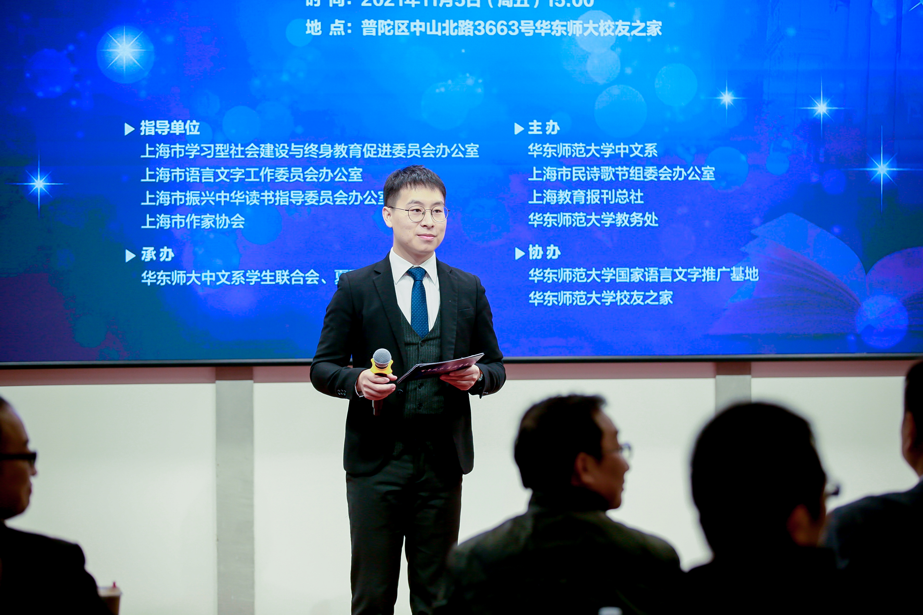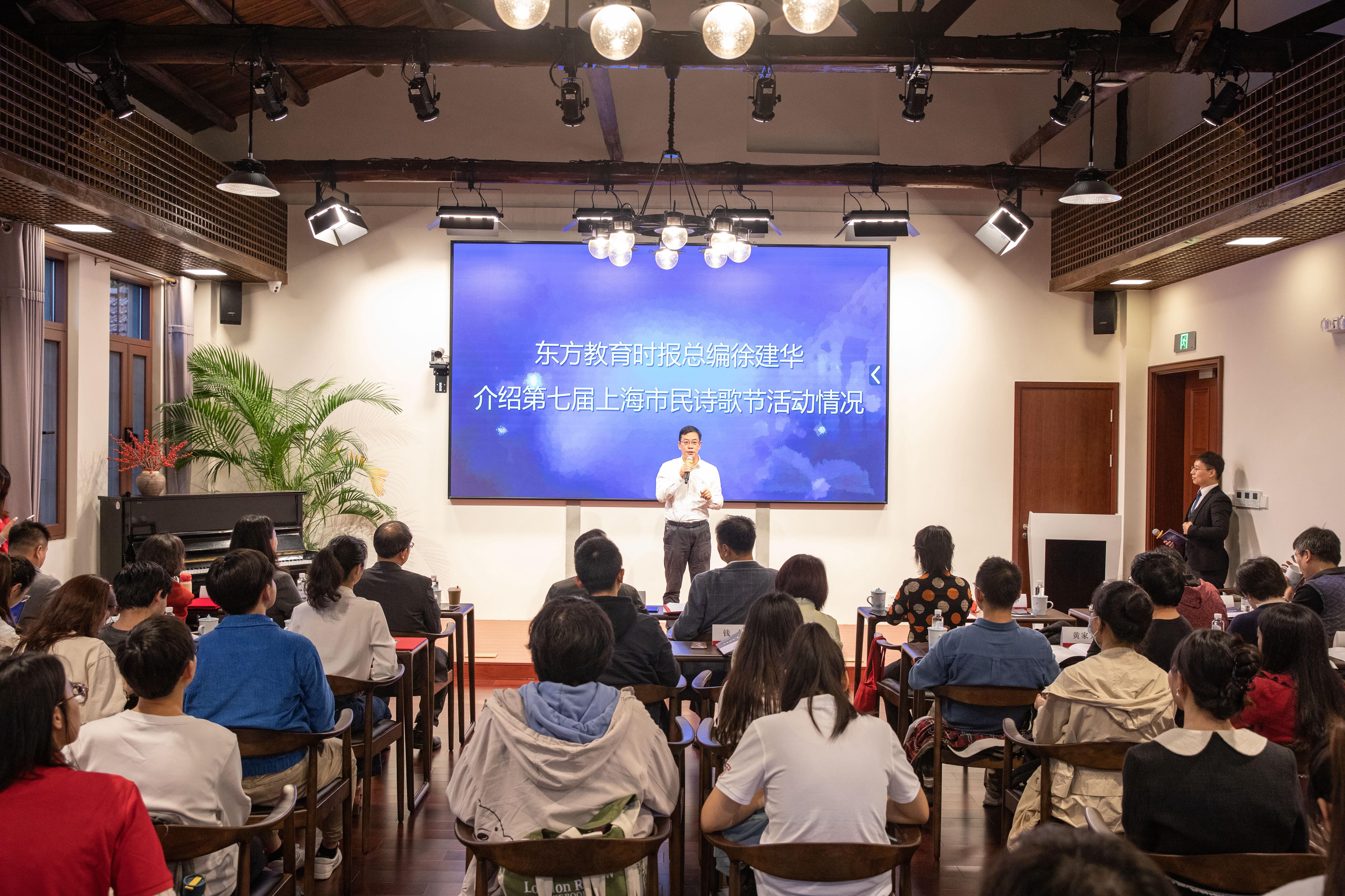 上海市民诗歌节组委会办公室负责人、东方教育时报总编徐建华介绍活动情况