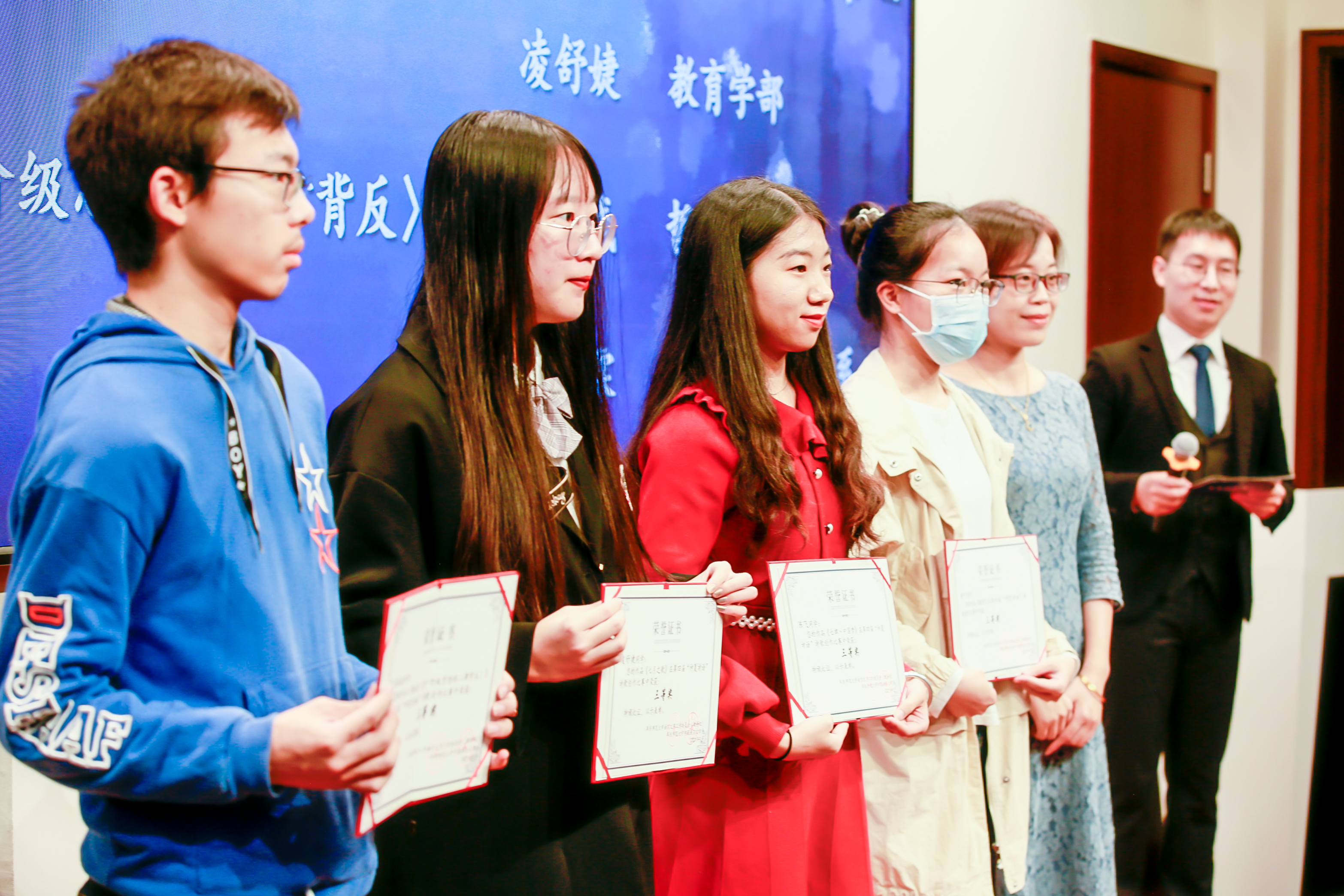 校长助理、校友工作办公室主任斯阳为一等奖获奖者颁奖