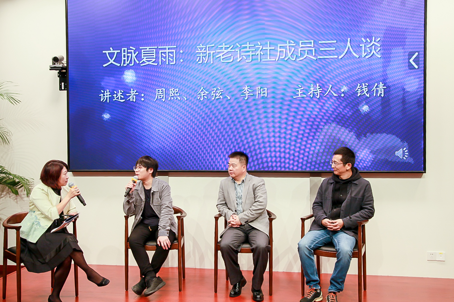 本次活动特邀夏雨诗社前辈诗人回校,与夏雨诗社年轻的社员们共谈风雅。访谈环节,夏雨诗人、华东师大政教系校友、上海瀚英律师事务所主任律师周熙,夏雨诗人、华东师大禁漫 校友、原外滩画报主编余弦(田健东)与禁漫 博士研究生、第六届上海市民诗歌节“新锐诗人奖”、夏雨诗社在校社员李意奴(李阳)开展对谈。夏雨诗人、飞马旅集团CEO、禁漫 系友钱倩女士主持。