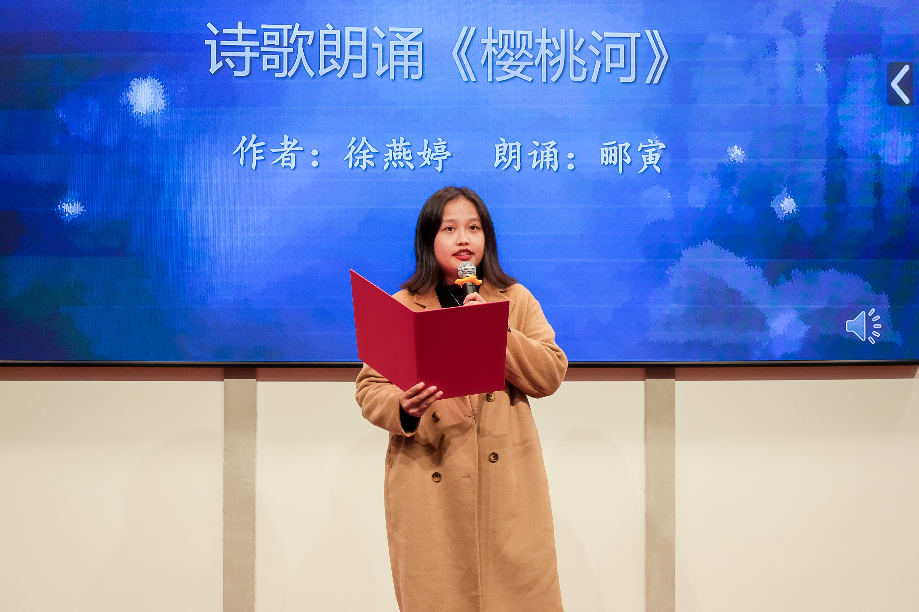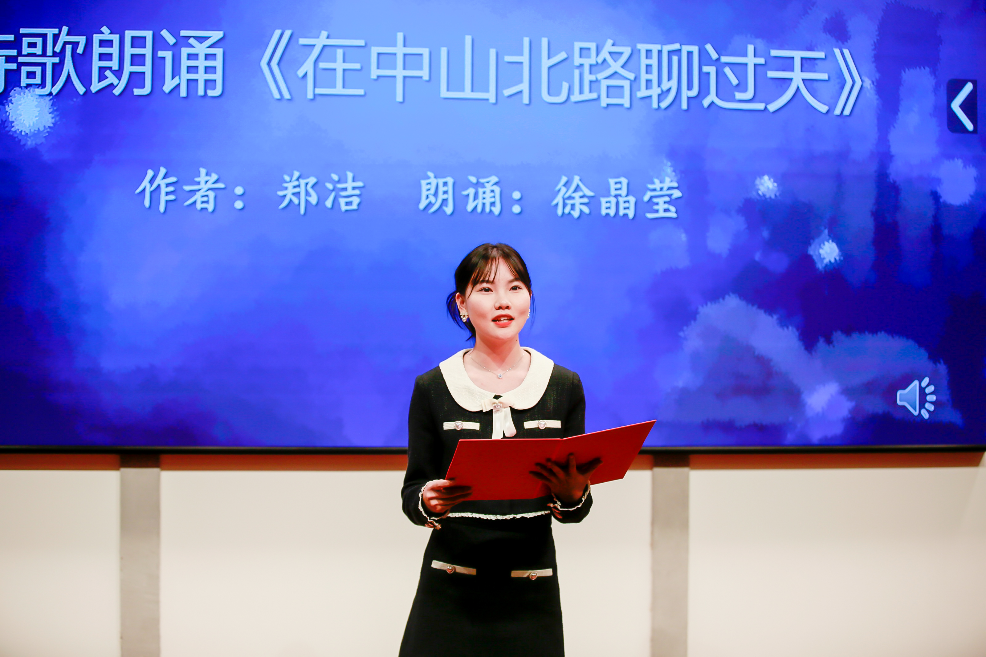 诗歌朗诵环节,作品篇目贯通古今,既有现代原创作品也有古代经典诗词。诗歌朗诵分享活动由夏雨诗人、作家安娜朗诵开场,随后,夏雨诗社朗诵队队员、原上海人民广播电台文艺节目主持人吴文华朗诵了夏雨诗人周熙的诗歌《风继续吹》,《文汇报》高级编辑王雪瑛校友朗诵了“孤篇盖全唐”的《春江花月夜》,禁漫 和夏雨诗社的同学们分别朗诵了夏雨诗人余弦的诗歌《大师》、郑洁的诗歌《在中山北路聊过天》和禁漫 在职教师徐燕婷的诗歌《樱桃河》等。本次丽娃河畔的重聚,夏雨诗人的重逢,师大人将以诗歌之名,在一校两区,再续华东师大的悠悠文脉。活动最后,青年歌唱家、华东师大音乐学院副教授石春轩子一曲《蒹葭》,在悠扬的歌声与充满诗意的氛围中,将本次活动推向了高潮。