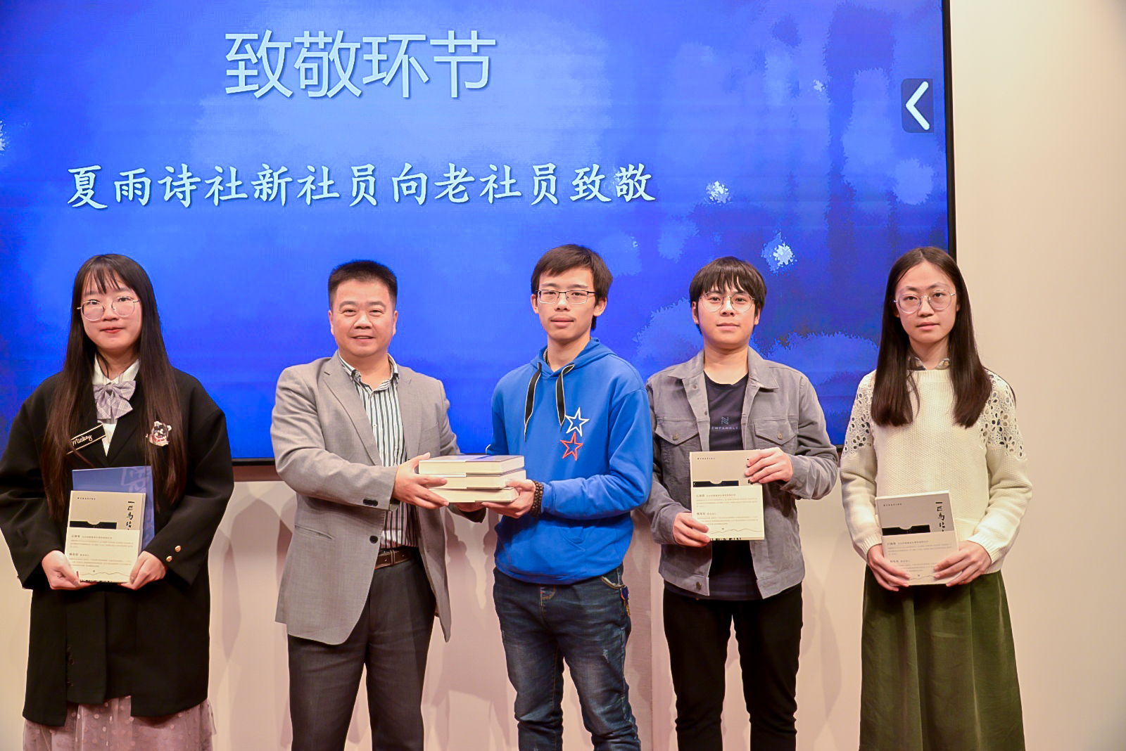 夏雨诗人周熙向诗社在校诗人赠送诗集